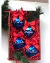 Kırmızı parlak 6 cm boyutunda beş adet yeni yıl dileklerinden oluşan yılbaşı ağaç süsüdür.
